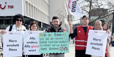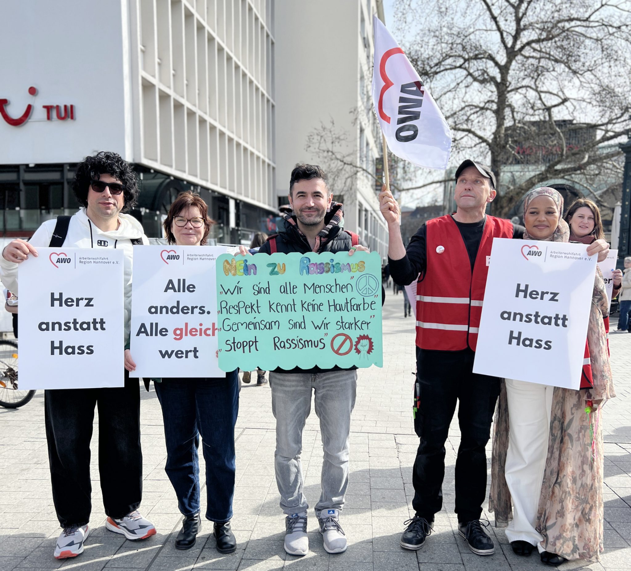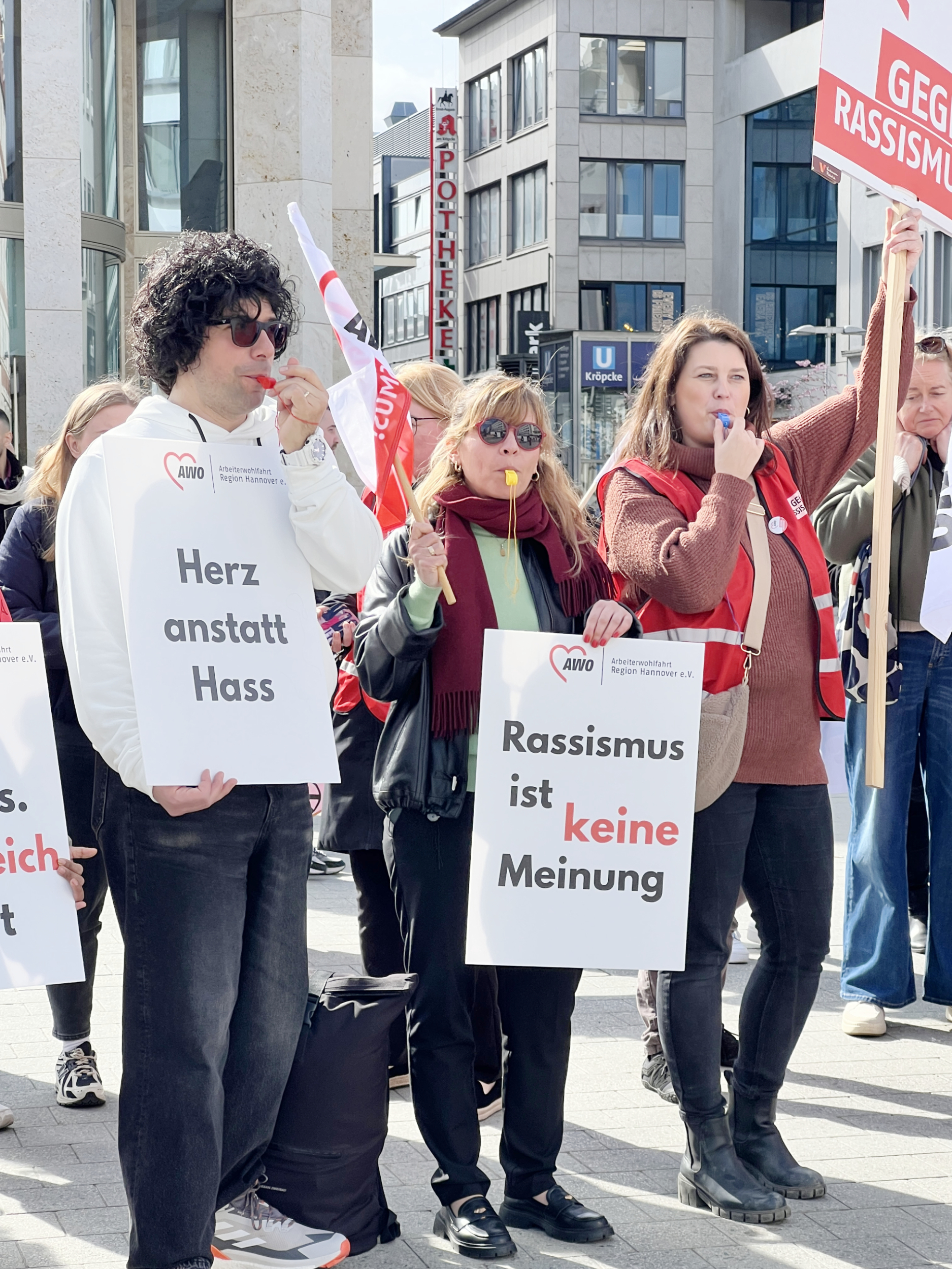 Region Hannover/ Hannover. Mit einer Kundgebung auf dem Kröpcke haben rund 150 Mitarbeitende der AWO Region Hannover e.V., des AWO Bezirksverbands Hannover e.V. und des Bezirksjugendwerks der AWO Hannover ein deutliches Zeichen gegen Rassismus und Rechtsextremismus gesetzt.