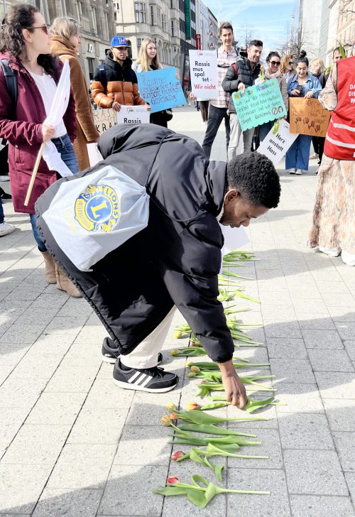Unter dem Motto „100 % Menschenwürde. Zusammen gegen Rassismus und Rechtsextremismus“ versammelten sie sich um fünf vor zwölf auf dem Kröpcke in der hannoverschen Innenstadt, um für Vielfalt, Respekt und gesellschaftliche Teilhabe einzutreten.