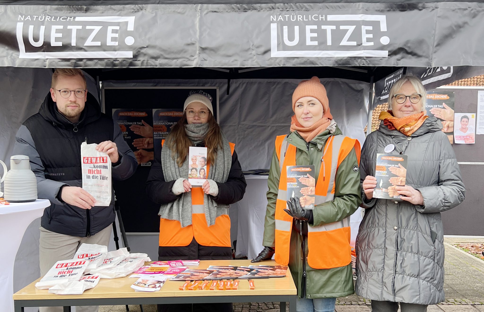 Region Hannover/Uetze. Gewalt gegen Frauen ist kein Randphänomen – sie betrifft alle Teile der Gesellschaft. Um darauf aufmerksam zu machen und Solidarität sichtbar werden zu lassen, hat das Frauenbündnis der Gemeinde Uetze heute einen Aktionstag auf dem Hindenburgplatz organisiert. Anlass war der Internationale Tag gegen Gewalt an Frauen am 25. November.