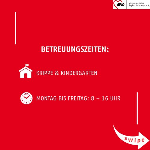 Die Öffnungszeiten der Kita sind montags bis freitags von 08 bis 16 Uhr. Interessierte Familien können sich telefonisch unter 0511 / 22 01 99 40 oder per E-Mail an kita.cecile-huk-ring@awo-hannover.de an die Einrichtung wenden. Die AWO-Kita Cecile-Huk-Ring befindet sich am Cécile Huk Ring 9 in 30453 Hannover und freut sich auf neue Familien.
