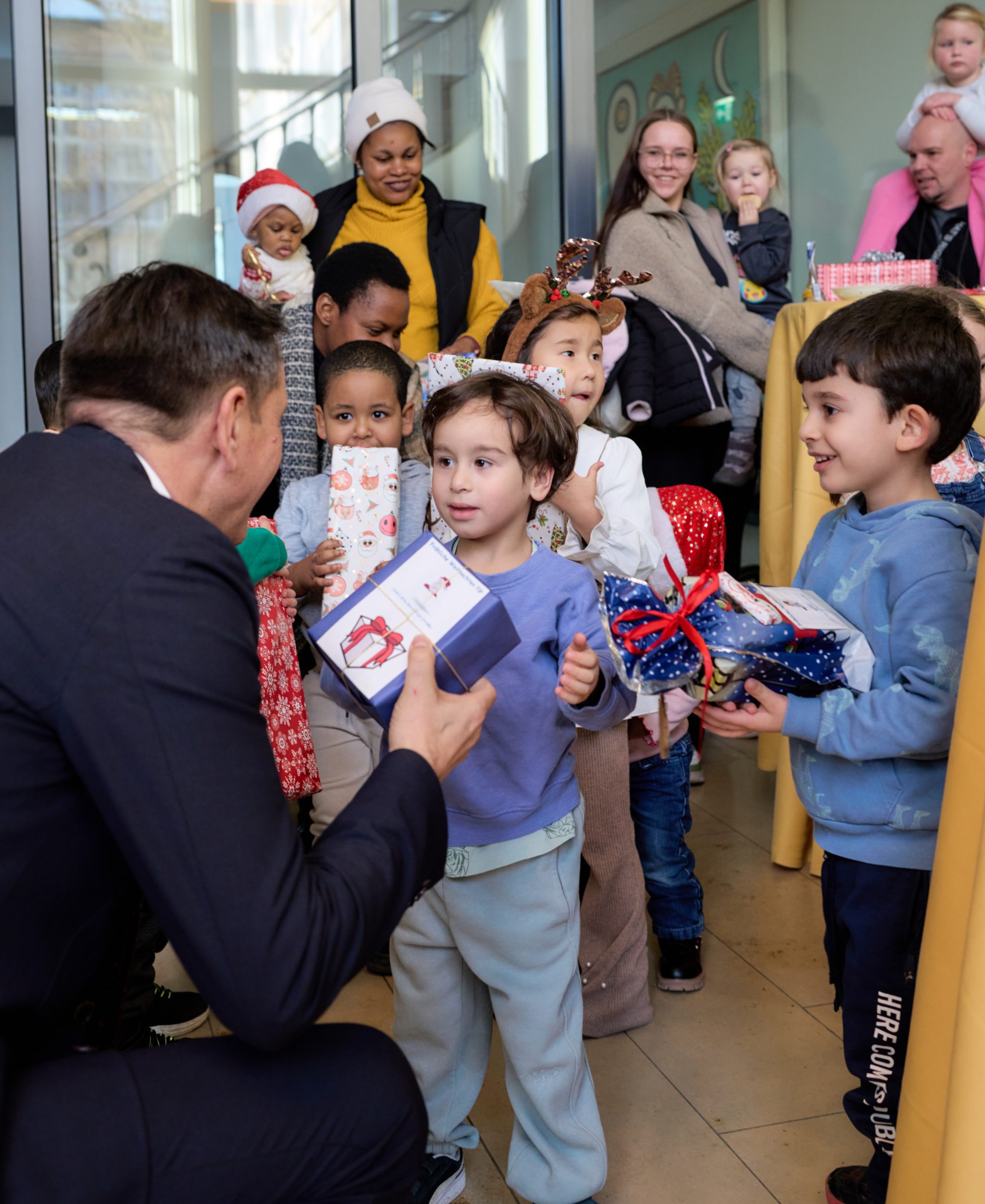 Die Geschenke kamen Kindern kamen dem Carré Spierenweg, einer Einrichtung für begleitetes Wohnen für alleinerziehende Mütter, Väter und Schwangere, der AWO Kita Gorch-Fock-Straße und der Beratung für EU-Zuwanderung zu Gute.