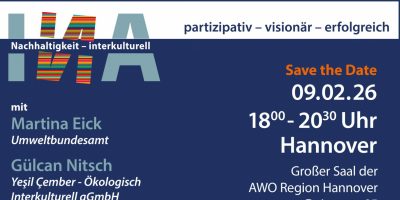 Region Hannover/Hannover-Linden. Das Multiplikationsprojekt „Nachhaltigkeit – interkulturell“ lädt zur Ergebnisfeier der Nachhaltigkeitstrainings 2025 ein. Die Veranstaltung bietet einen Einblick in die Projektarbeit, stellt neue interkulturelle Nachhaltigkeitsprojekte vor und schafft Raum für Austausch, Vernetzung sowie die Anbahnung neuer Kooperationen. Die Ergebnisfeier findet am 9. Februar 2026 von 18 bis 20:30 Uhr im Tagungszentrum der AWO Region Hannover, Martha-Wissmann-Platz 3, 30449 Hannover, statt.